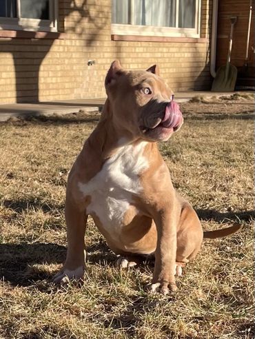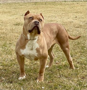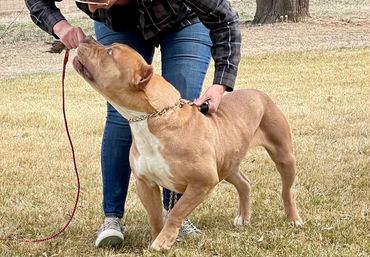 Coming in at around 85 lbs & still growing! This thick girl right here has a stunning tan and white coat and is registered with the ABKC.